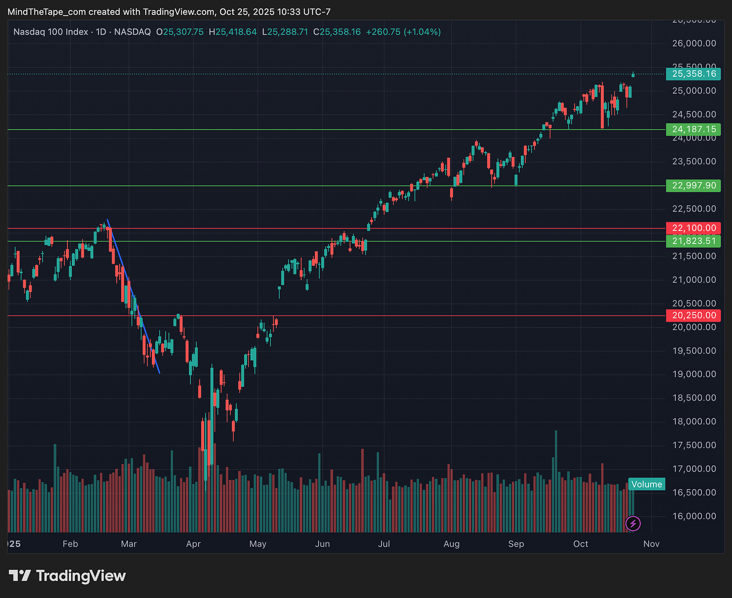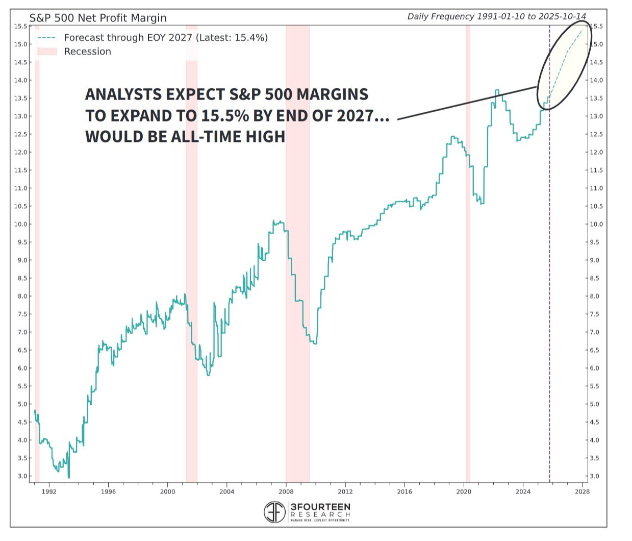 ATHs aren’t magic, but seasonality and buybacks lean bullish, positioning still (somehow!) leaves plenty of dry powder, earnings breadth is decent, and margins are expanding.