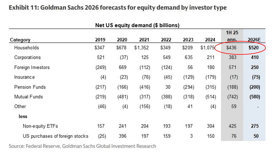 This has really been a retail-driven market, and that trend seems likely to continue into Q4 and even into 2026 if Goldman’s forecast is right.
