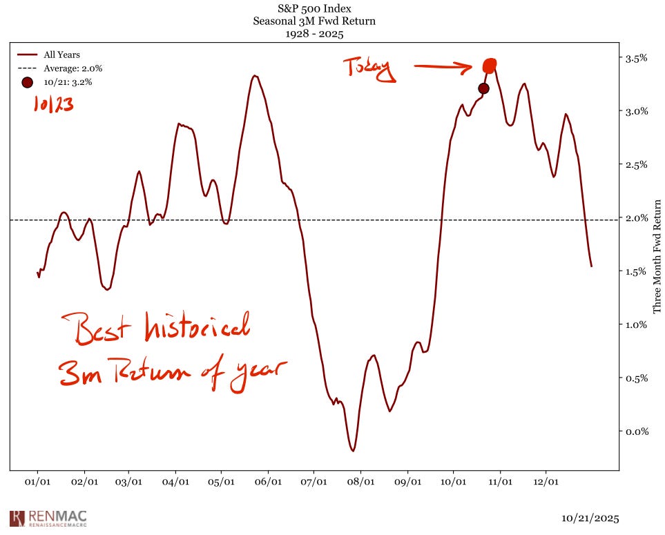 On the seasonality front, last Thursday was the single best day of the year (historically) to buy stocks on a 3-month forward return basis.