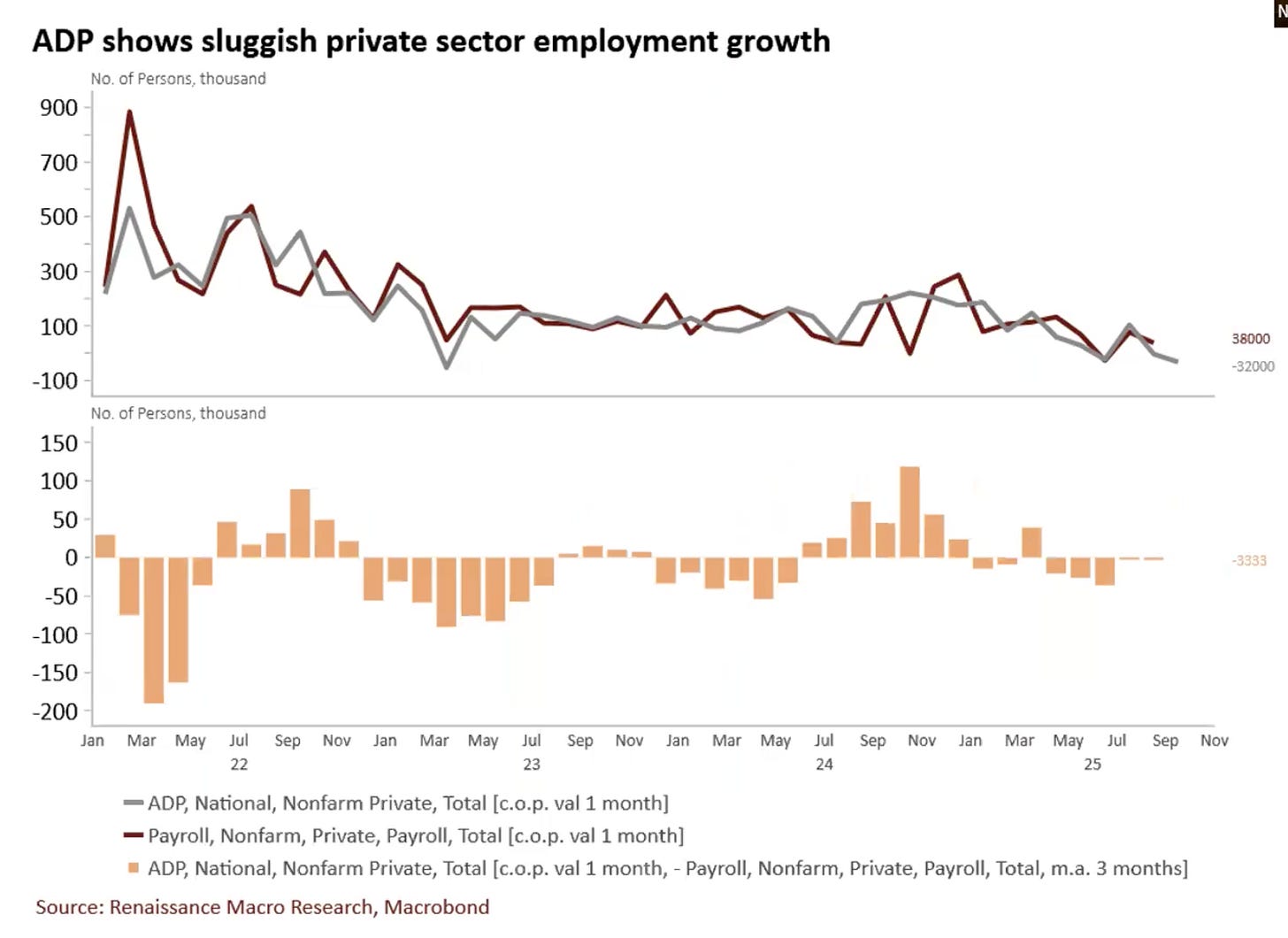 We continue to only see limited employment data due to the government shutdown, but the private ADP data we see shows continued slowdown.