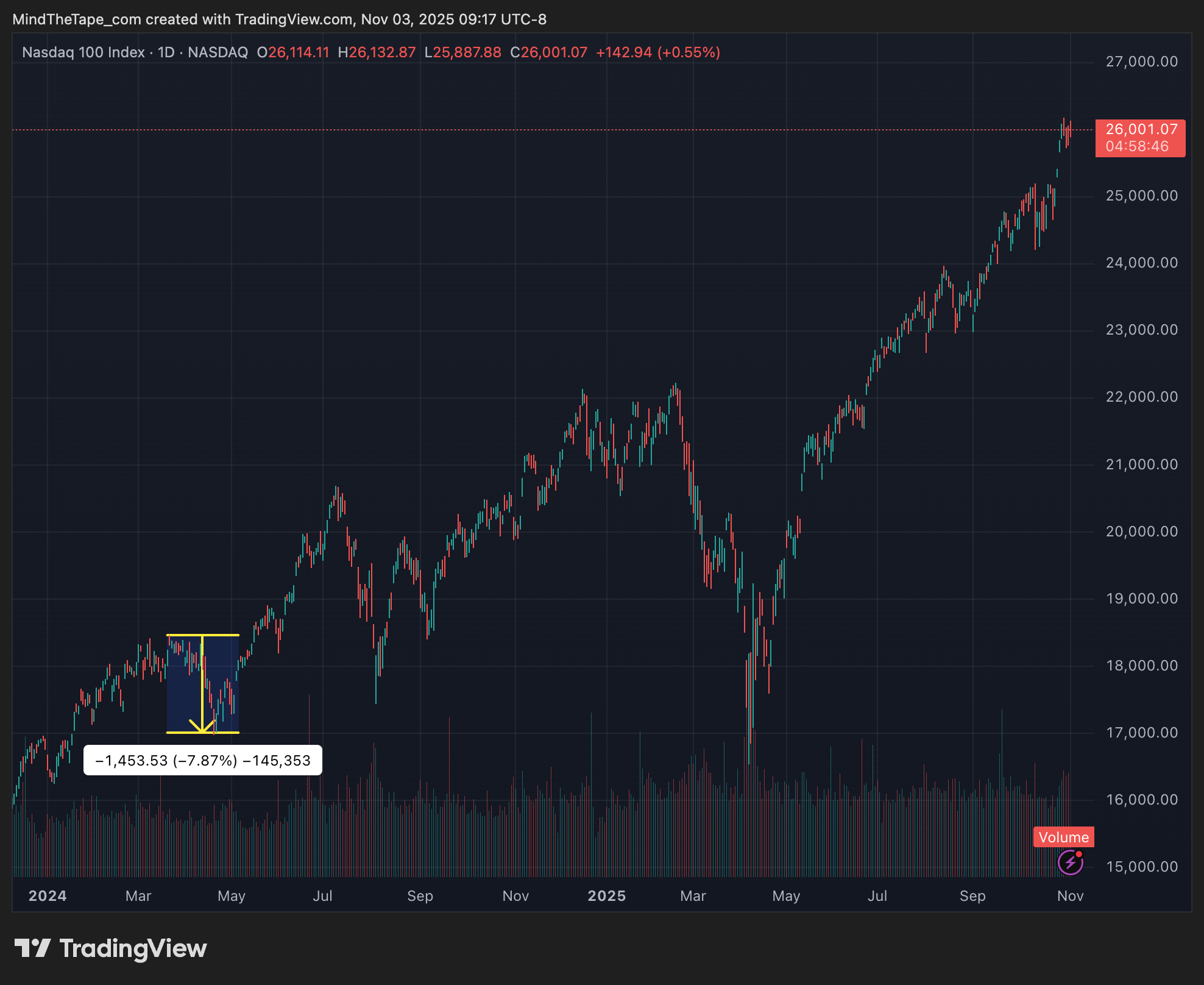 I don’t necessarily think we will see the same drawdown we saw in Q2 24’ off of this, because whereas in 2024 there was still deep lingering fear of a recession after the 2022 rate hiking cycle, we have a much more structurally optimistic investing environment this time around.