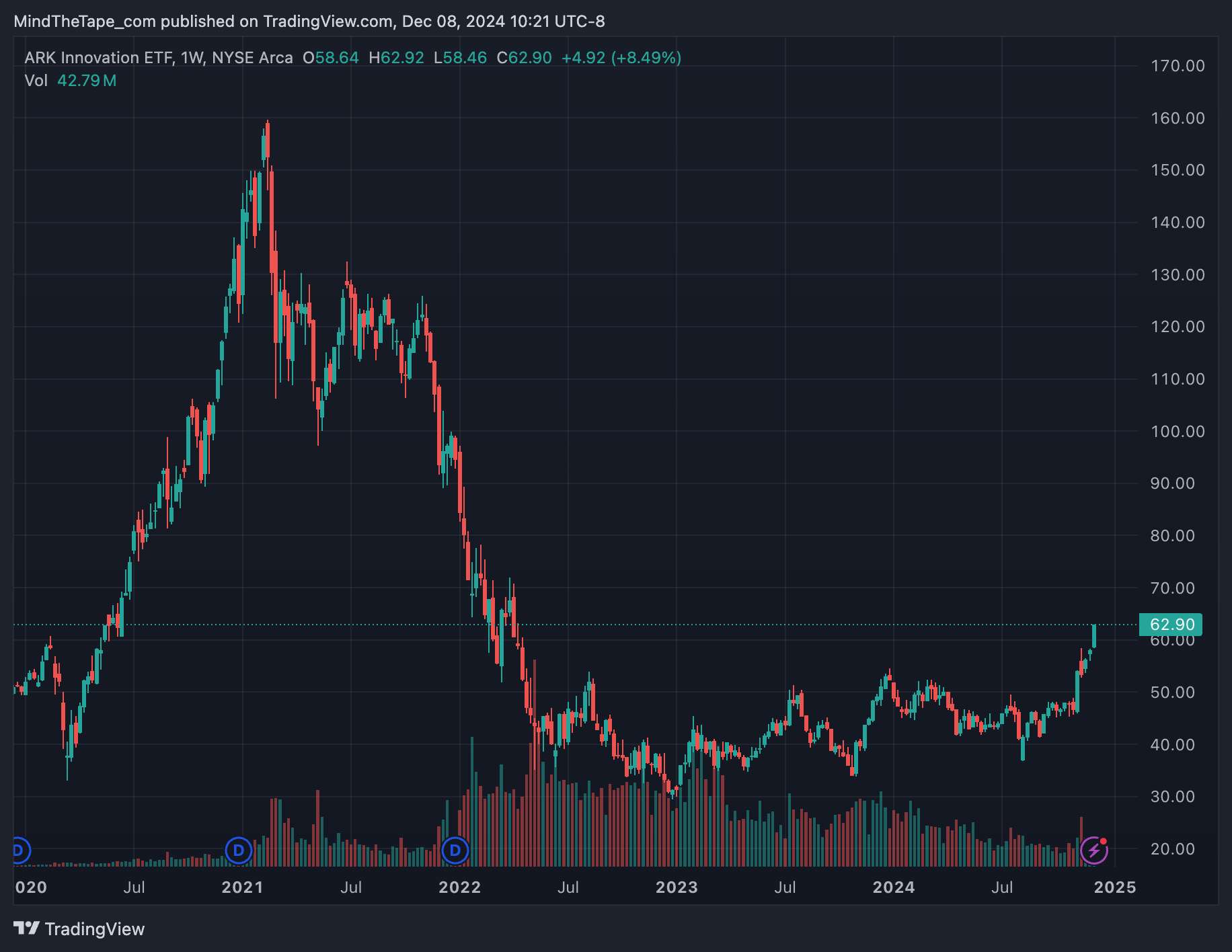 The last time ARKK started a breakout like this, we were just about a year from the cycle top and 18 months from a crash.