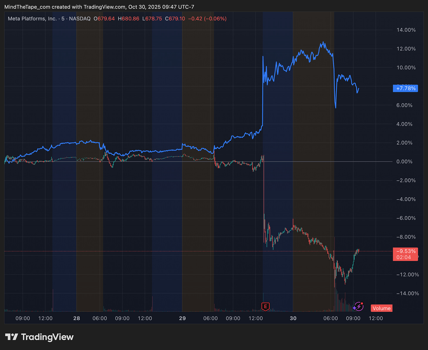 Meta dropped sharply by about 10% and continues falling during the call and overnight.