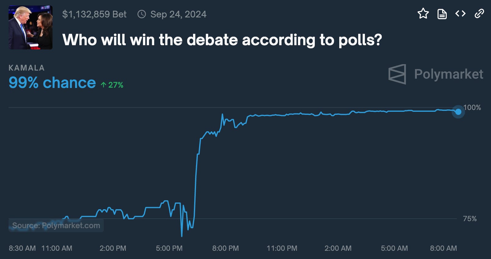 According to the betting markets, there was never much chance that Trump would win the debate. Partly, this is because Trump has lost, I believe, every other debate he has been in, according to the polls.