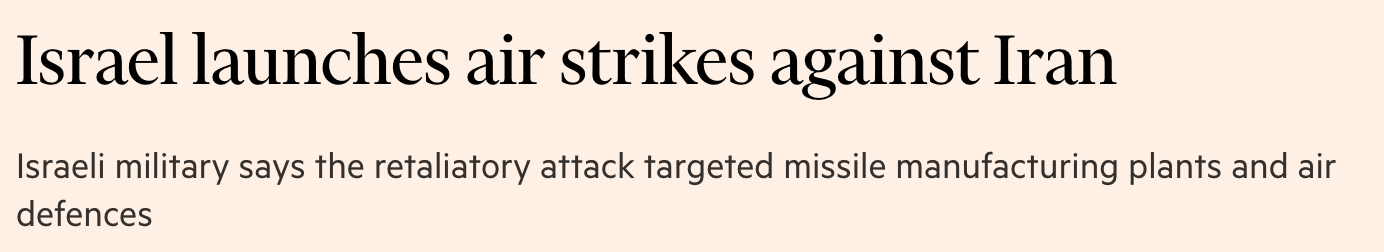 But I want to clarify: we have probably moved further away from regional war this weekend due to the restraint Israel showed, but we have not thoroughly put it in the rearview mirror. Israel is currently engaged in ground combat with Hezbollah, a direct proxy of Iran, who also regularly launches rocket strikes into Israeli territory.