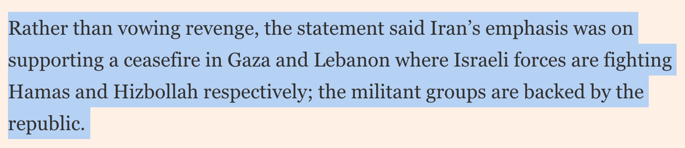I have not found the direct quote, which is a shame because this is one of those instances where the nuance of the language is essential. Nonetheless, I’ve seen multiple outlets reporting that US officials said they would “defend” Israel against another round of attacks.