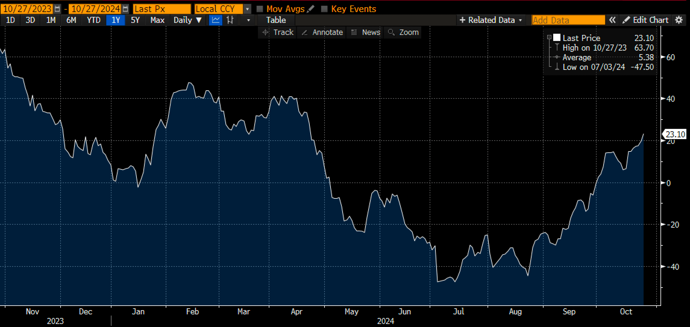 Economic data has been surprising to the upside since the lows in August, and looking at this week’s estimates, I would expect that trend to continue.
